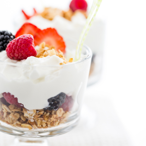 A refreshing blend of creamy yogurt layered with sweet strawberries, juicy blueberries, and crunchy granola — the perfect balance of wholesome and delicious.